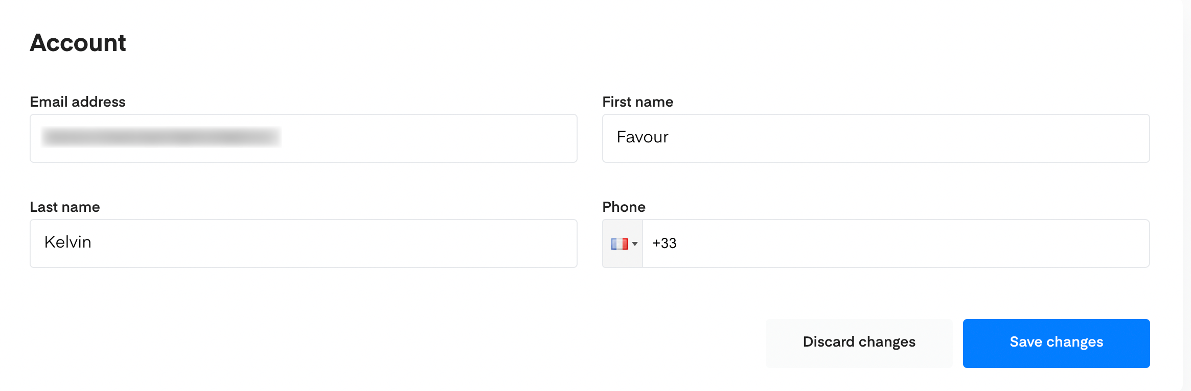 Once changes have been made to one or more of these fields, click on **Save changes**. If you do not want to save the changes, click on **Discard changes**.