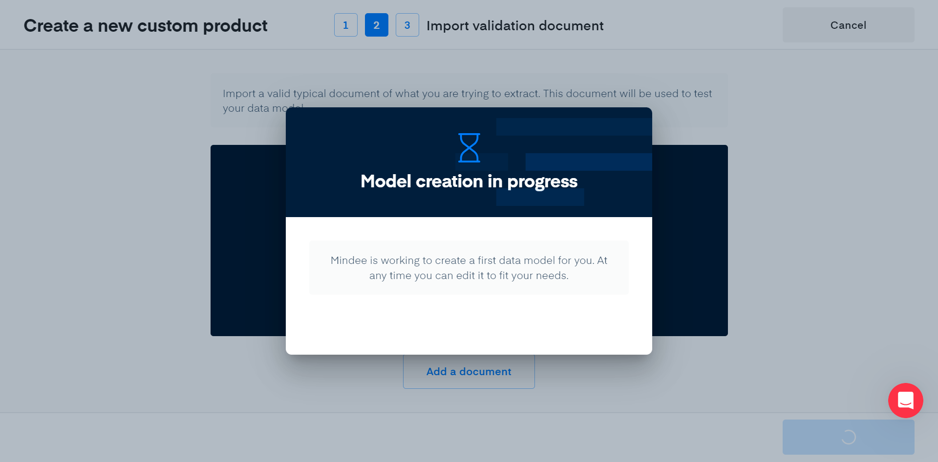 After adding your validation document, Mindee will prepare your product and build an initial data model