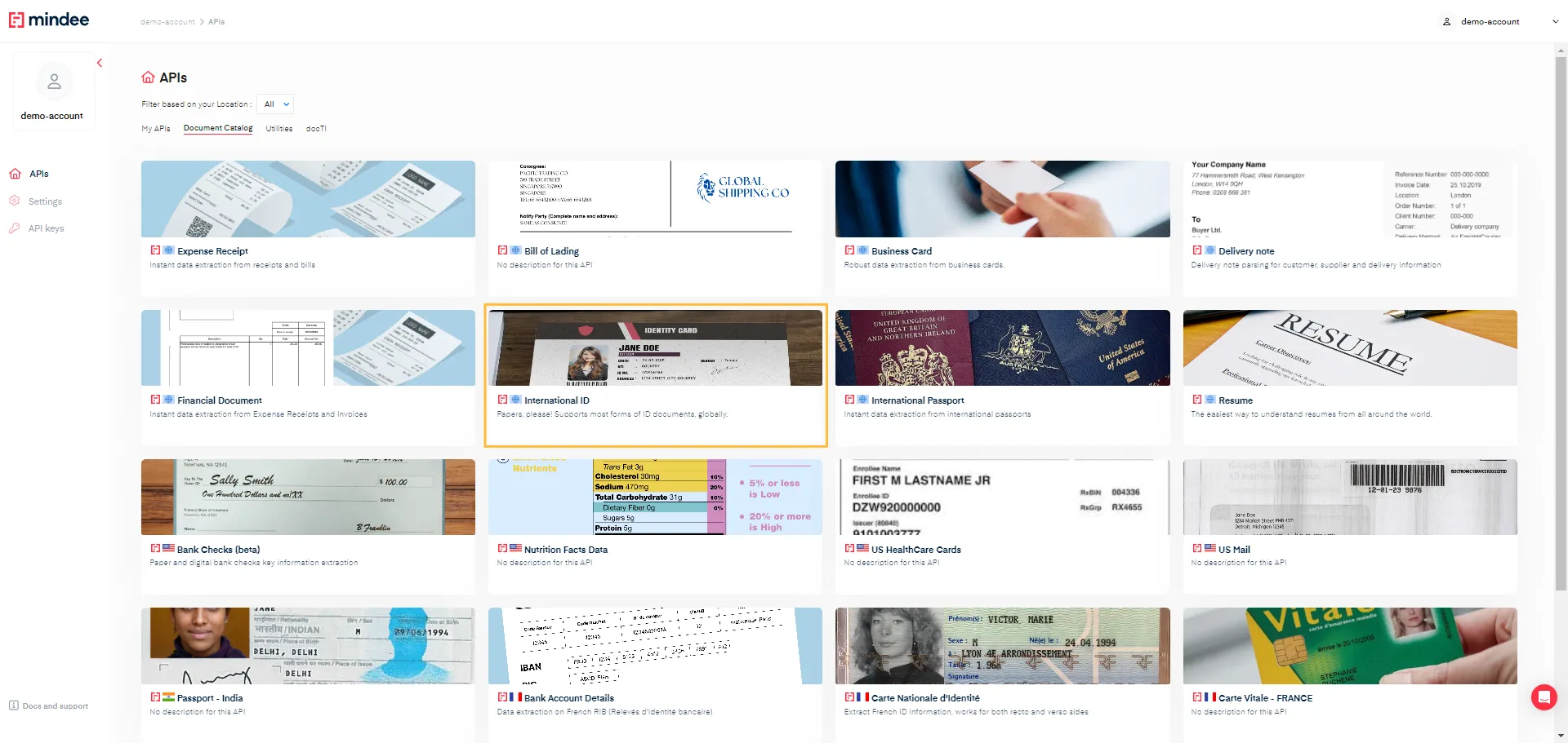 Mindee’s International ID API uses deep learning to automatically, accurately, and instantaneously parse your documents details. In a few seconds, the API extracts a set of data from your PDFs or photos of ID’s from all locations, including: