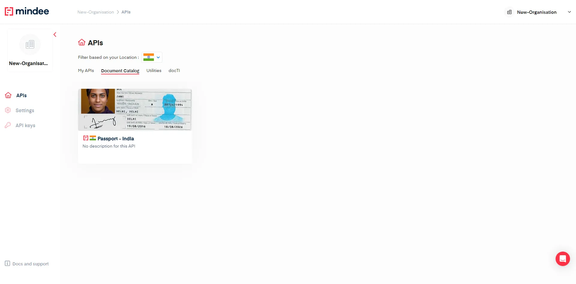 2. Access your Passport - Indian API by clicking on the corresponding product card in the **Document Catalog**