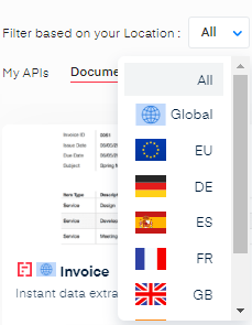 To make it easier to find the most relevant off-the-shelf APIs, you can filter them by location on the APIs page. This feature simplifies the process of locating APIs that are suited to your specific needs. However, all available off-the-shelf APIs are accessible regardless of your location.
